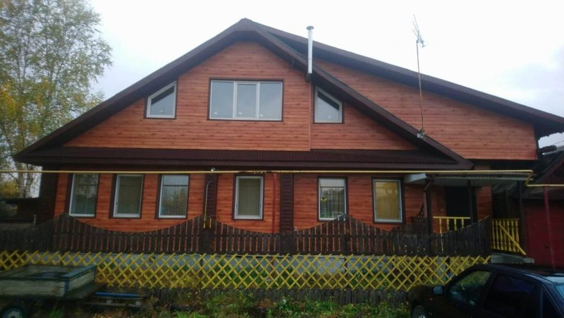 Профнастил С-8 в древесном оттенке "Золотое Дерево" (Printech, Корея) на фасаде дома