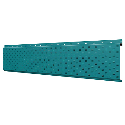 Линеарная потолочно-стеновая панель с ПЕРФОРАЦИЕЙ для вентиляции цвет RAL5021 Морская Волна применяется в качестве софитов для подшивы крыши, наружной и внутренней отделки потолков, стен, фронтонов фасада дома в Волгограде.