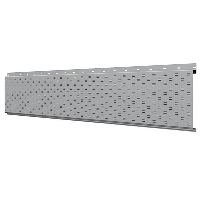 Линеарная потолочно-стеновая панель с ПЕРФОРАЦИЕЙ для вентиляции цвет RAL7004 Серый применяется в качестве софитов для подшивы крыши, наружной и внутренней отделки потолков, стен, фронтонов фасада дома в Волгограде.