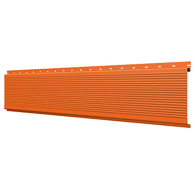 Линеарная потолочно-стеновая панель РИФЛЕНАЯ усиленная цвет RAL2004 Оранжевый Апельсин применяется в качестве софитов для подшивы крыши, наружной и внутренней отделки потолков, стен, фронтонов фасада дома в Волгограде.