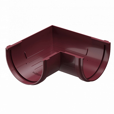 Угловой элемент желоба универсальный ДЕКЕ STANDARD d120мм 90 градусов цвет RAL 3005 Красный в Волгограде. Угловые элементы устанавливаются как на внешних, так и на внутренних углах кровли и предназначены для соединения желобов.