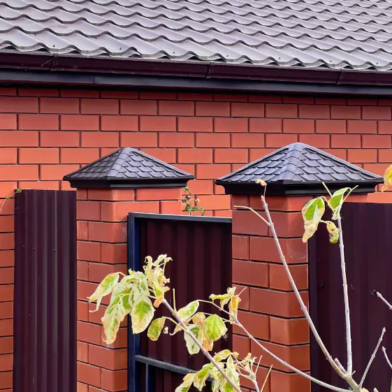 Колпак Elbrus Коричневый на столбах кирпичного забора в Волгограде