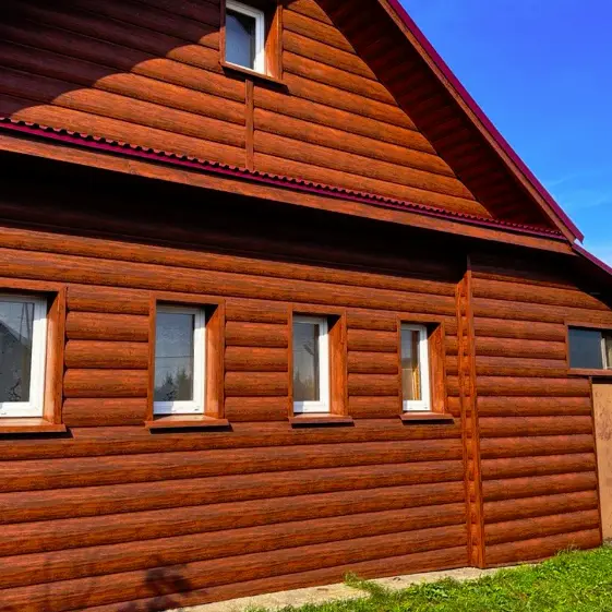 Фото 2 фасад металлосайдинг Бревно Рубленое 4D Темный Дуб Принтек